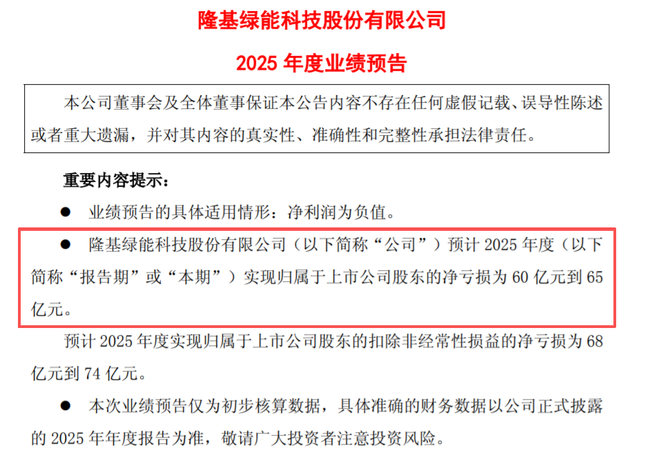 行业老二隆基绿能,预亏60-65亿;