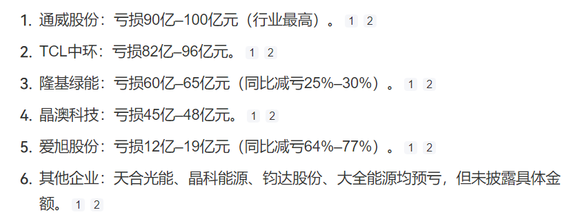 还有晶科能源、钧达股份、大全能源等,业绩预告全部都是亏亏亏!