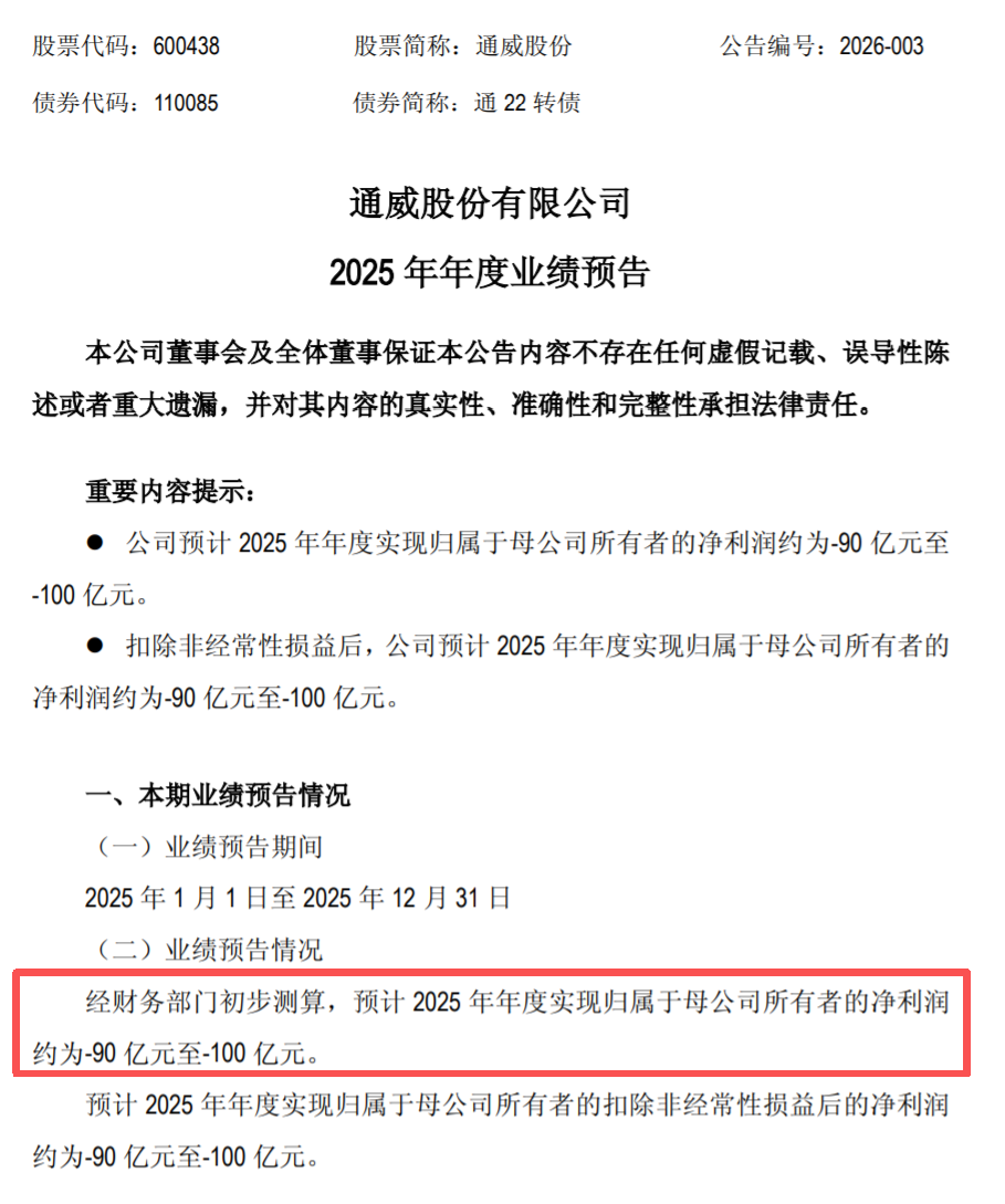 行业老大通威,预亏90-100亿;