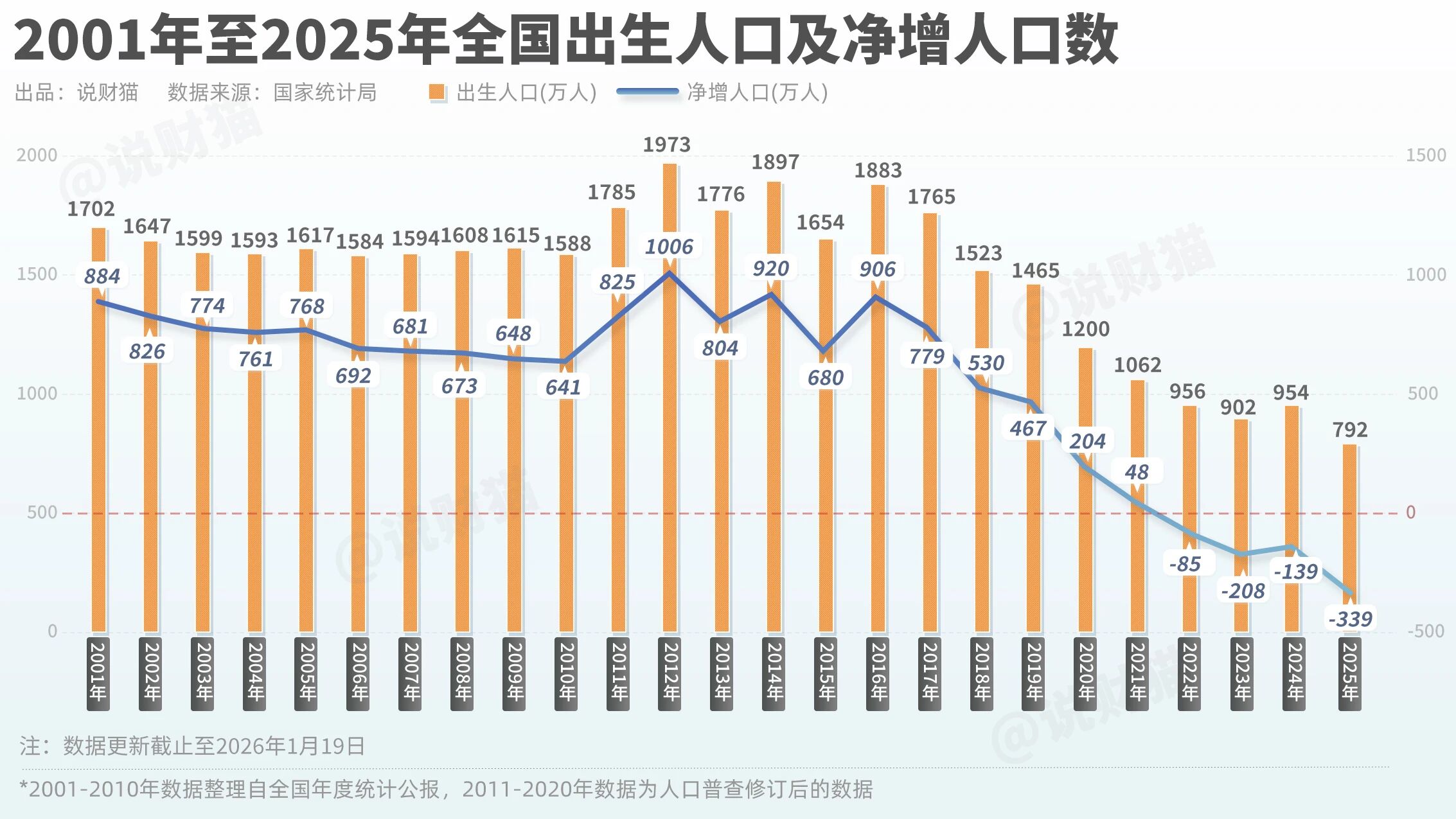 1月19日,国家统计局披露2025年经济数据,GDP总量达到140.2万亿,同比增长5%,持续向好,但全年出生人口为792万人,首次跌破800万,相比2024年,减少了162万人,再创新低。