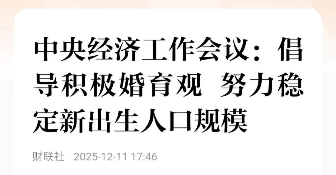在去年12月召开的中央经济工作会议上明确提出:“倡导积极婚育观,努力稳定新出生人口规模。”
