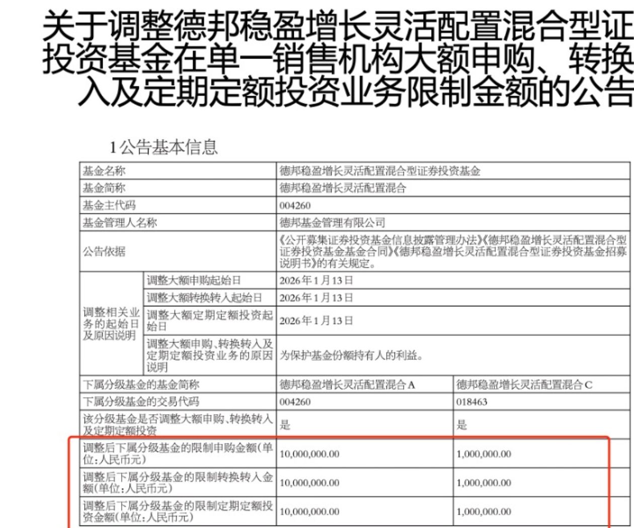 但市场观察人士发现了一个关键信号。1月12日,该基金将A/C类份额单渠道单日申购上限分别设为1000万元、100万元;次日便再度下调至10万元、1万元,限购力度的快速升级,进一步放大了市场的抢购情绪。这种紧急限购举措,也被业内视为资金汹涌涌入的侧面印证。