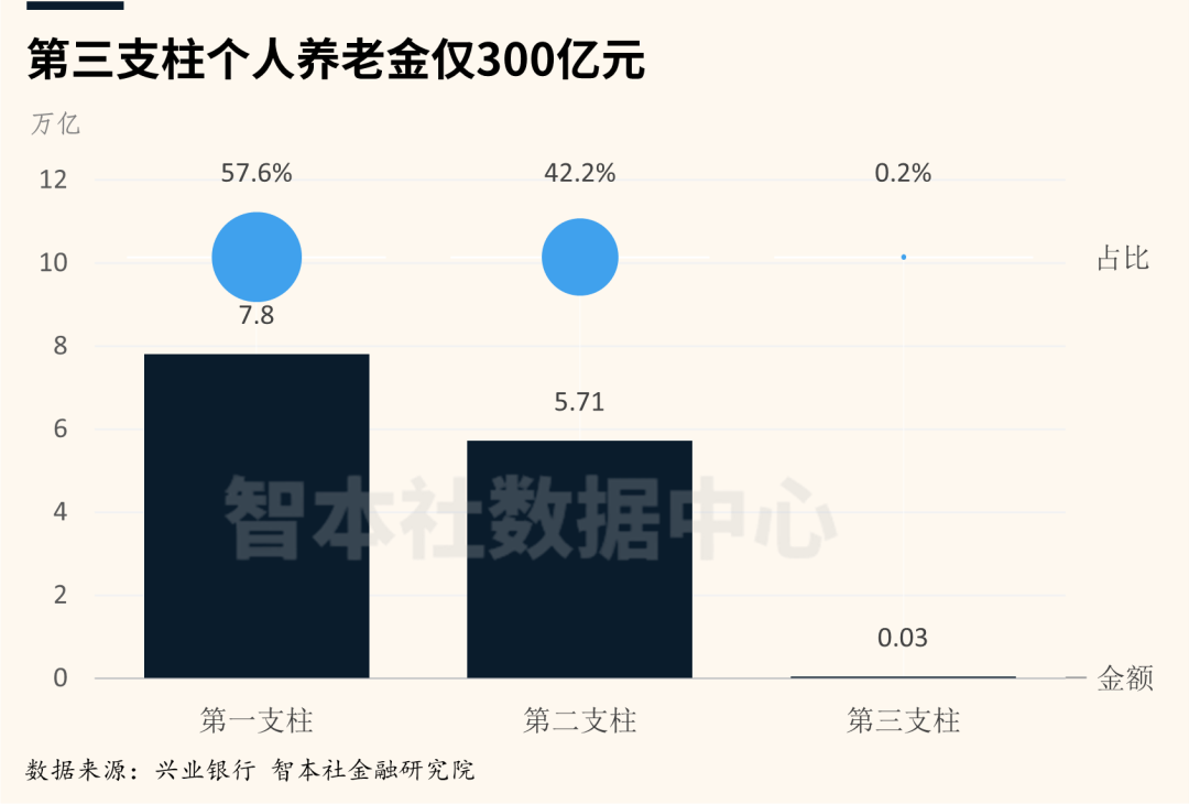 第二支柱的职业年金主要覆盖机关事业单位工作人员,企业年金则长期以国企、央企、大型金融机构为主,另外还包含部分大型集团公司一部分群体,这也是过去一直被诟病“体制内专属福利”的原因,目前总规模5.71万亿元。近年来,政策正推动其向更广泛市场主体扩展。