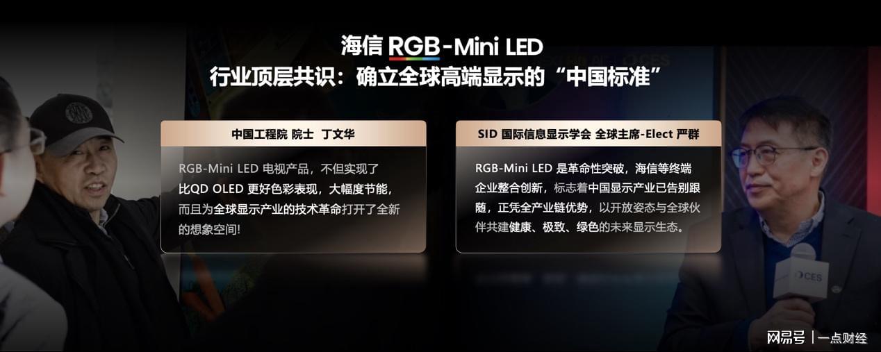 国际信息显示学会(SID)全球总裁严群也给予高度评价:“RGB-Mini LED技术是革命性突破,海信等终端企业整合创新标志着中国显示产业已告别跟随,正凭全产业链优势,以开放姿态与全球伙伴共建健康、极致、绿色的未来显示生态。”