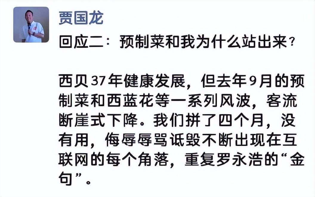 他一直死磕罗永浩,或许以为只要把罗永浩怼得不出声了,这场争议就结束了,西贝的口碑就能挽回了。