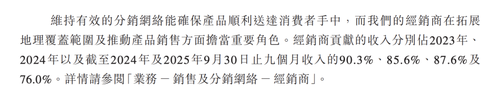招股书显示,截至2025年9月30日,云峰莫干山有875名经销商,覆盖中国所有省份及45个海外国家及地区。2023年至2025年前9个月,经销商贡献的收入占比分别达90.3%、85.6%和76%。