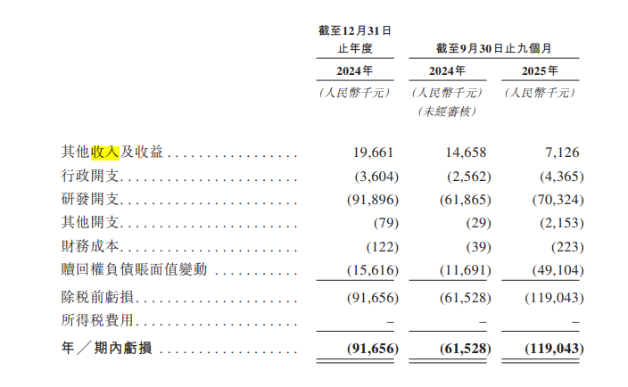财务数据显示,2024年度公司净亏损9165.6万元,2025年前三季度净亏损进一步扩大至1.19亿元,主要由于研发开支及赎回权负债账面值变动所致。现金流方面,经营活动现金净流出持续扩大,2024年为7886.5万元,2025年前三季度增至8407.5万元,资金主要用于研发及行政活动。