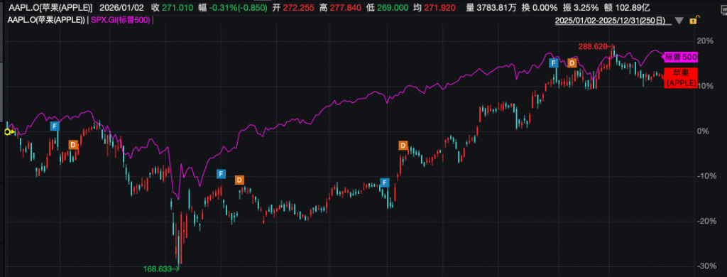 与此同时,其他成员相对落后。苹果股价去年跑输标普500指数,这家以iPhone闻名的公司因在AI领域的投入较为谨慎、进展不及竞争对手而面临市场批评。特斯拉作为昔日的市场焦点,则随着电动汽车销售增速放缓,其股价表现已明显落后于多数“七巨头”同行。