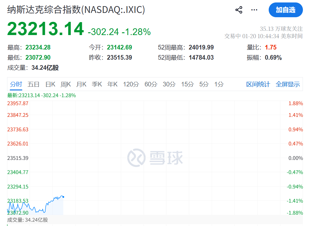 1月20日晚间,美股开盘重挫,随后跌幅略有收窄。