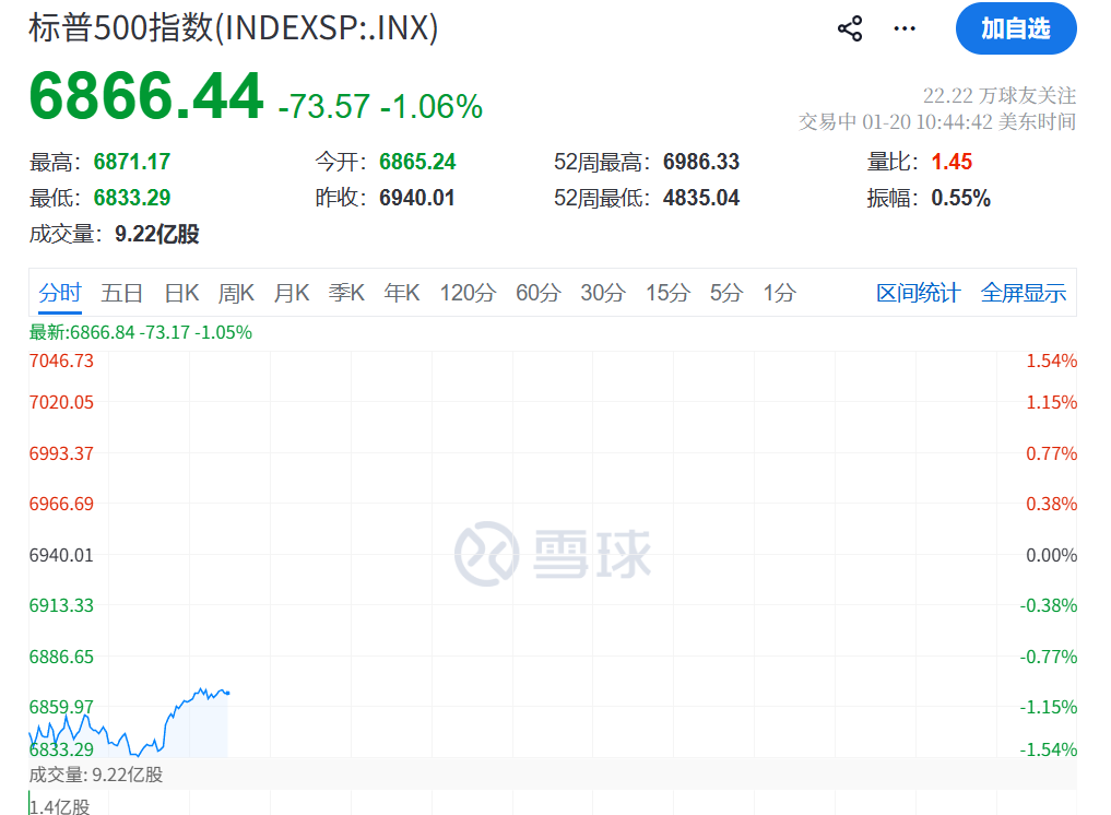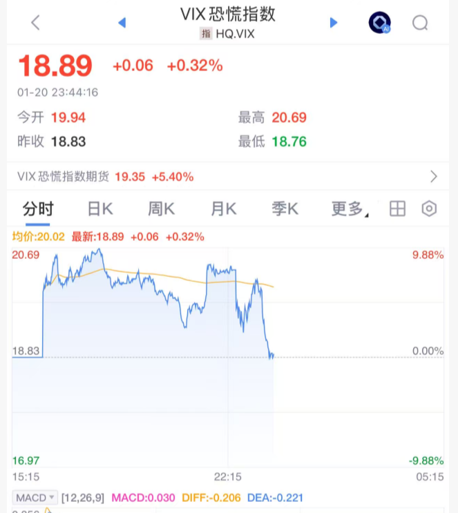 地缘政治紧张情绪拖累标普500指数一度下跌1.5%,把2026年以来的涨幅全部抹去;被称为华尔街“恐慌指数”的芝加哥期权交易所波动率指数(VIX)一度飙升至20.69,为2025年11月25日以来最高水平,不过截至发稿,已经开始回落。