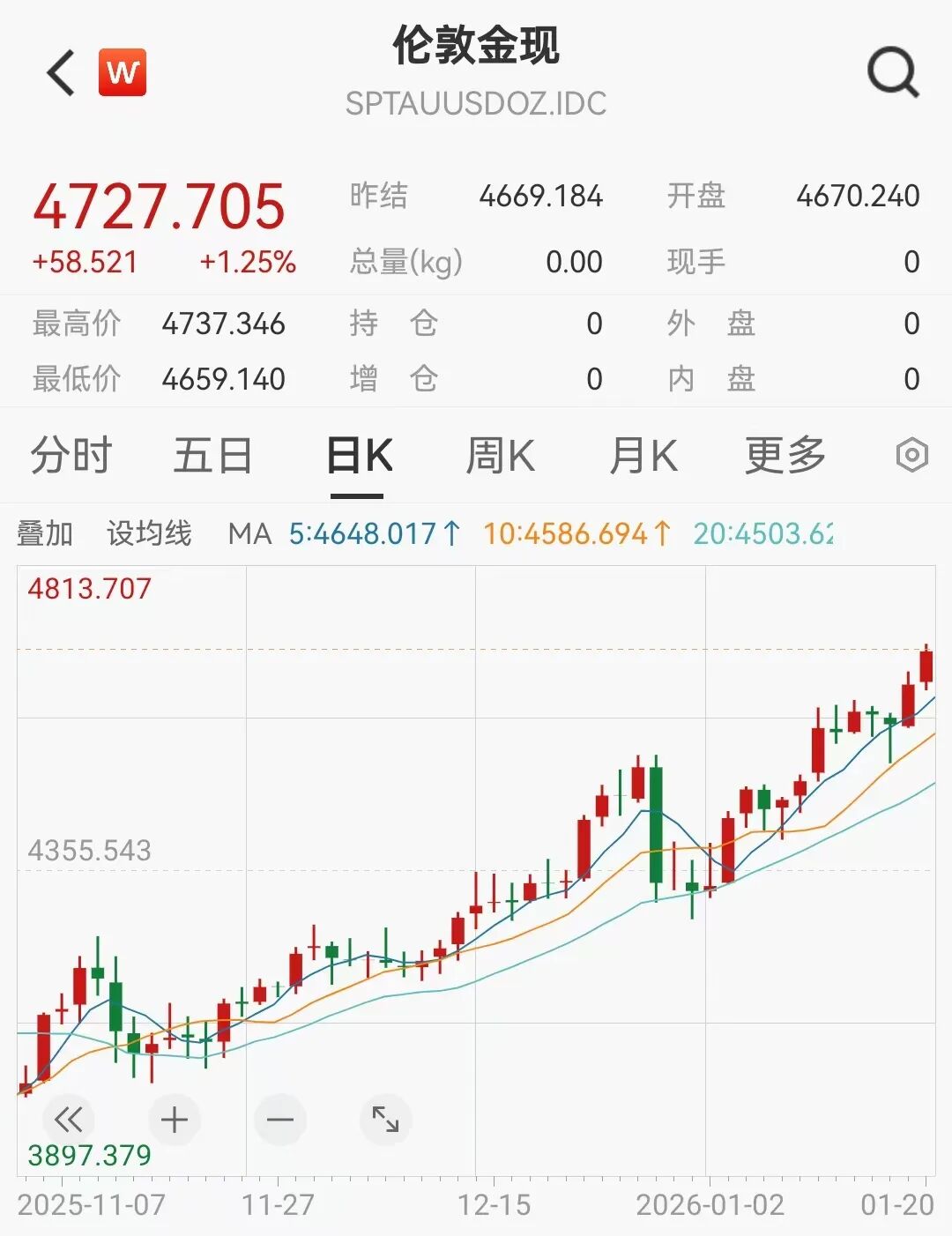 截至发稿,现货黄金涨超1%,报4727美元/盎司,今年以来累计上涨超10%。