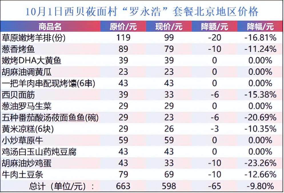 随后,西贝启动了小规模的降价,对30余道菜品进行系统性调价,平均降幅约20%,客单价从92元下降至75元。