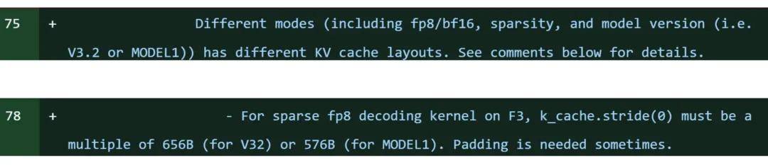 V32 (DeepSeek-V3.2):继续沿用 d_qk = 576 的配置。这是 DeepSeek-V3 引入的非对称 MLA 设计(128 维 RoPE + 448 维 Latent)。Model1:切换到了 512 维。这表明 DeepSeek-V4 在 MLA 架构上进行了「标准化」回归,可能是为了更好地匹配 Blackwell (SM100) 架构的算力对齐,或者优化了 Latent 压缩比例。