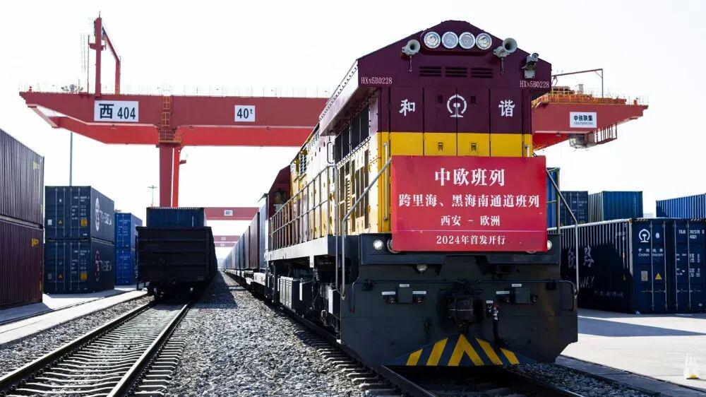 中欧班列跨里海、黑海南通道班列西安-欧洲2024年首发开行列车