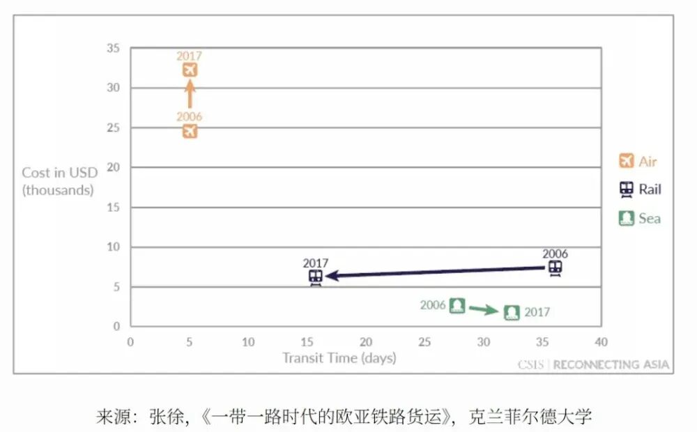 这就给中欧贸易提供了一种“中间选项”,成为介于海运、陆运和空运之间的“第四黄金通道”。