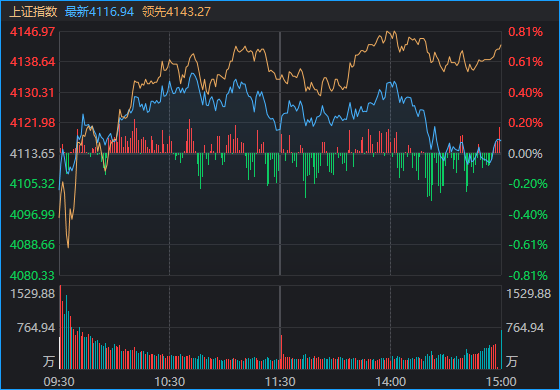 全市场超3000只个股上涨。沪深两市成交额2.6万亿元,较上一个交易日缩量1771亿。