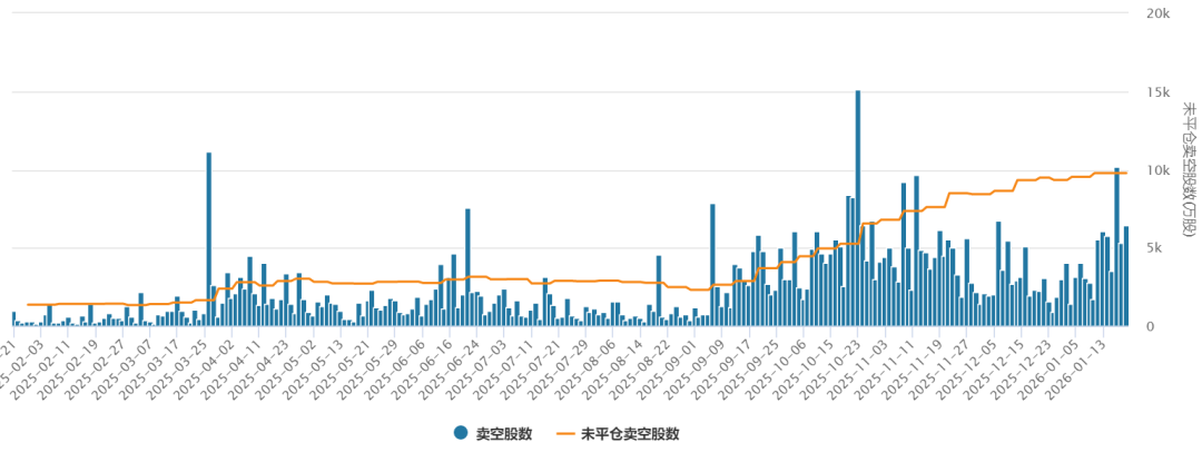消费市场的焦虑传导至资本市场。据Wind数据显示,自2025年8月以来,泡泡玛特未平仓卖空股数直线上涨,一度逼近1万股。