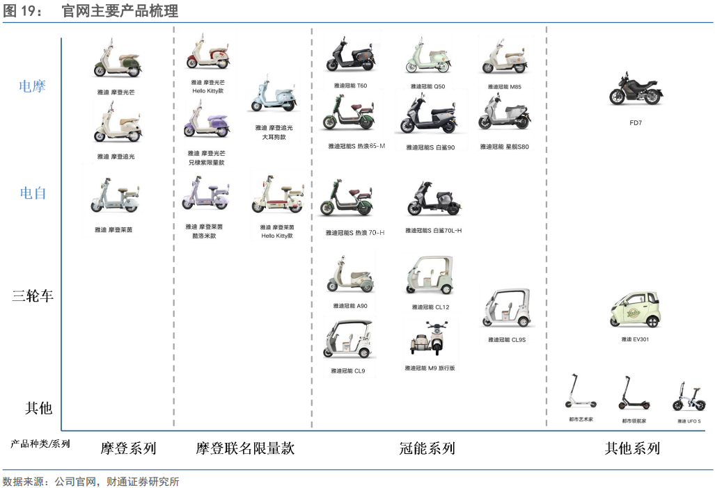雅迪作为行业头部,是极少数全线产品均具备电摩准入资质的企业。考虑到电摩和电轻摩产品均价高于电动自行车,因此,产品结构的优化有望持续提振公司单车均价,从价的角度提供增长利好。