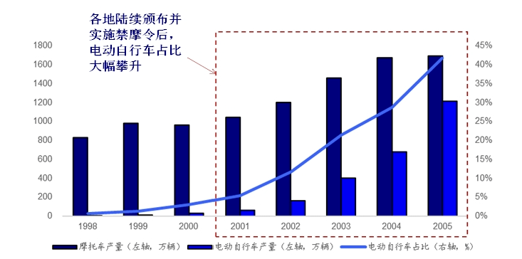 图:国内“禁摩令”后电动两轮车的爆发式增长