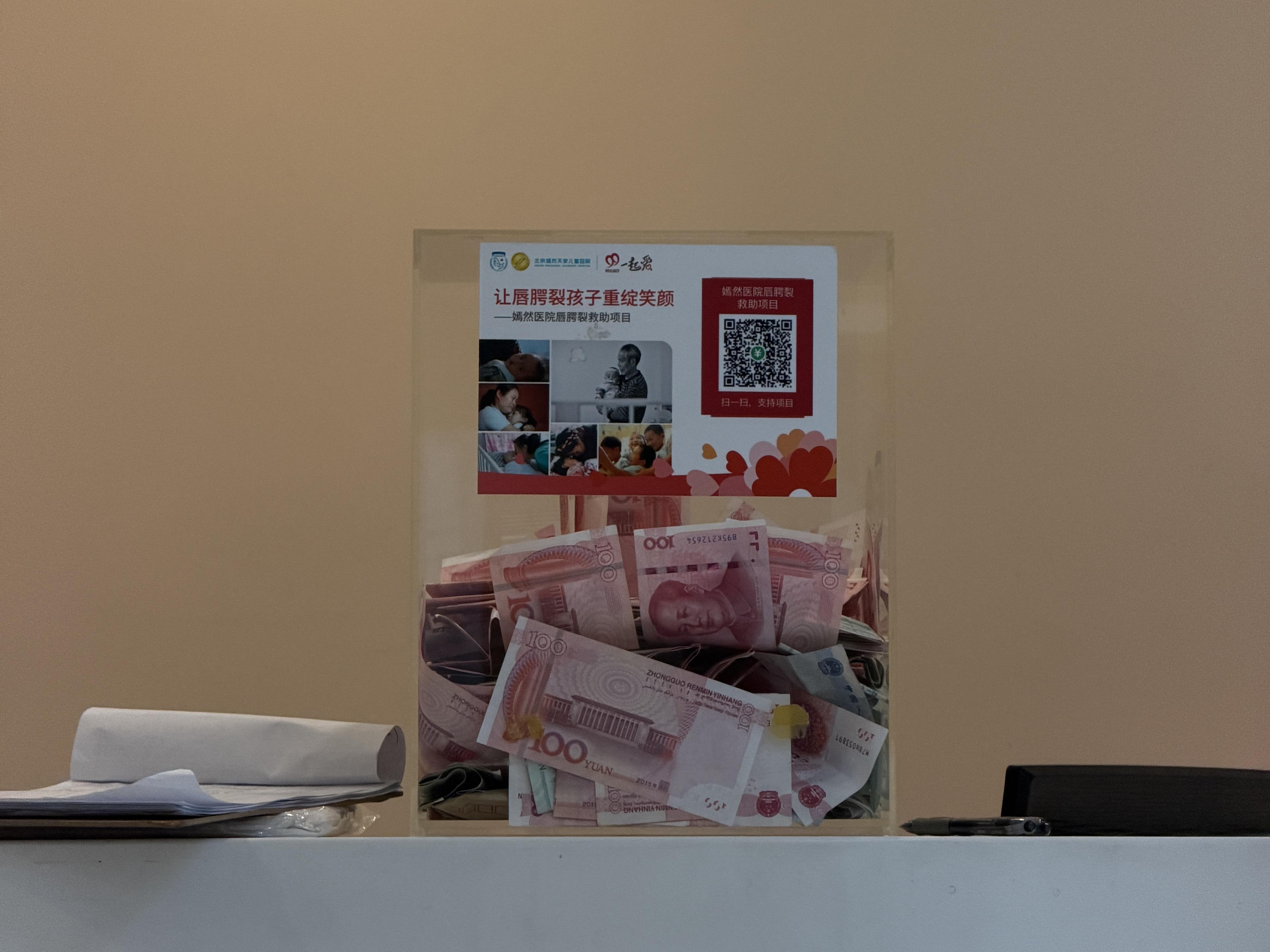 时代周报记者进入医院大厅后,以患者家属身份咨询前台工作人员得知,目前医院仍在运行,正常接诊患者,关于唇腭裂治疗仍可正常预约,可以在每天上午8:30-下午4:30拨打电话咨询并预约就诊。记者发现,现场也有多位人士在进行捐赠活动,工作人员向捐赠人士表示感谢。