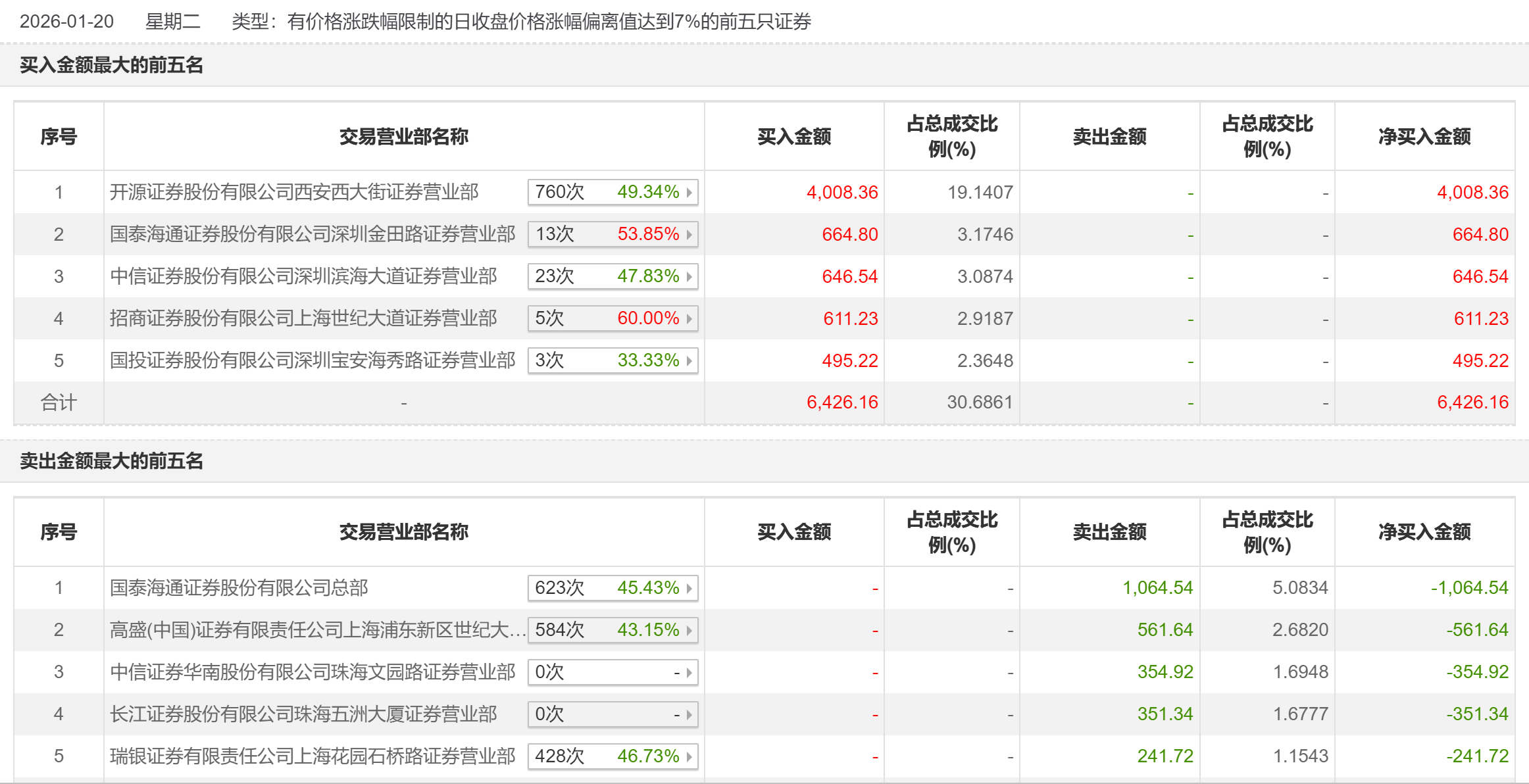 韩建河山1月20日盘后龙虎榜显示,量化基金分别占据了买一、买三、卖一、卖二、卖五席位。其中,处于买一的量化打板常用席位开源证券股份有限公司西安西大街证券营业部当日买入4008.36万元,金额超过了买二至买五之和。