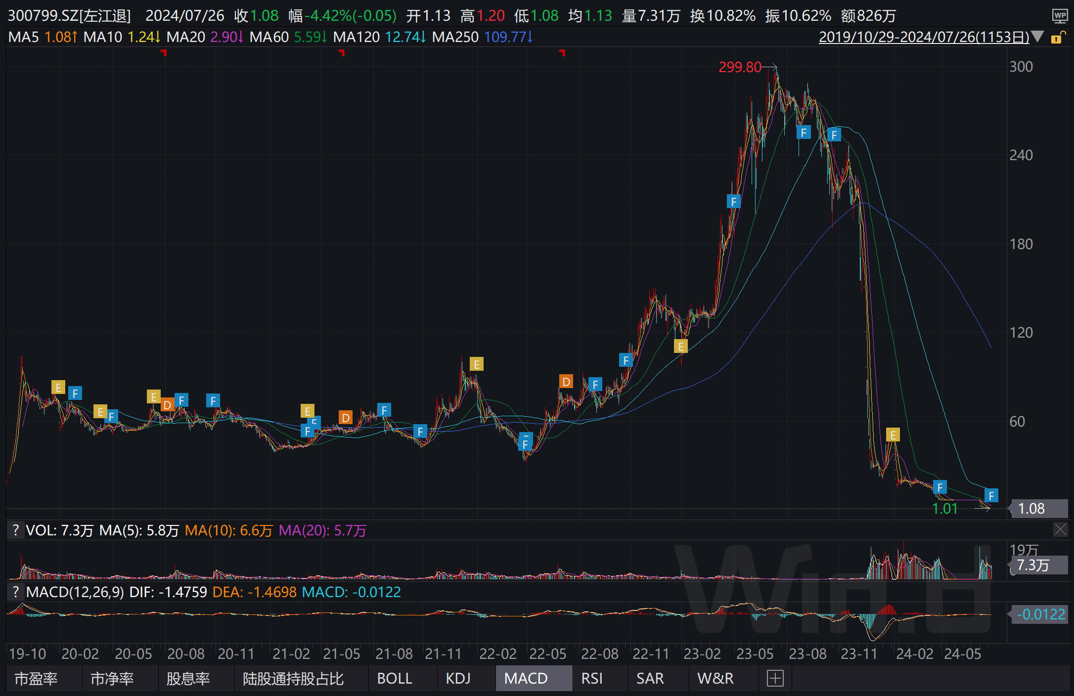 2024年7月26日,左江科技摘牌退市前最后一个交易日,股价报收1.08元/股,已不足最高点的千分之四。