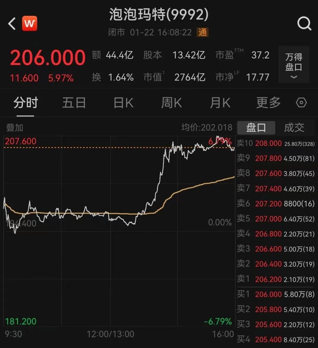 泡泡玛特涨近6%。消息面上,泡泡玛特1月21日以9649万港元回购50万股股份。这是公司本周内第二次回购公司股份,累计回购金额近3.5亿港元。