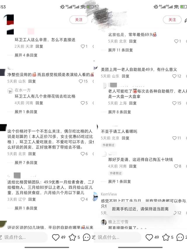 在小红书上,部分网友质疑“美团上周一老人自助就是49.9,有什么意义”“且感觉视频是表演给人看的”。也有网友持不同观点,认为这个价格对偶尔消费的顾客来说较为划算。