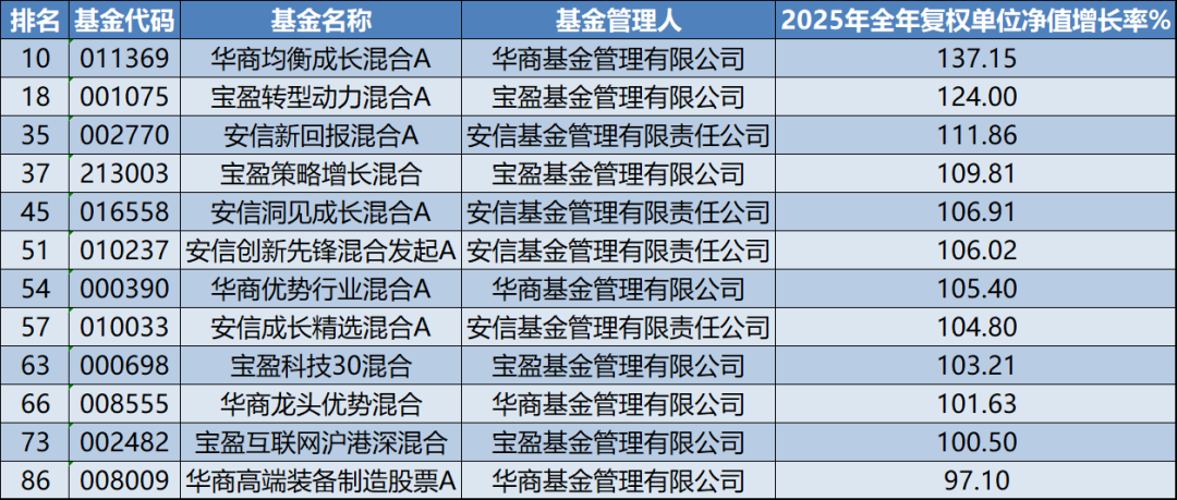 这意味2025年资本市场的行情非常强劲,或者这些基金集中投资于当时的热门高增长赛道。