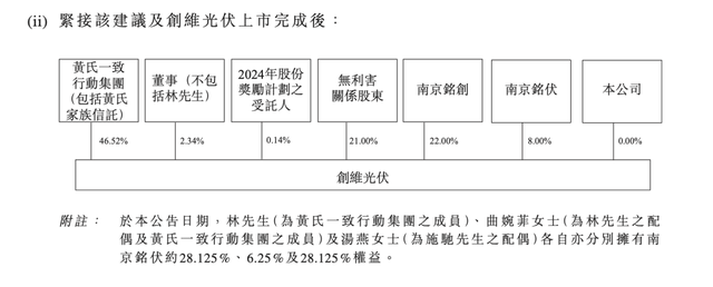 根据公告,完成分拆上市后,黄氏家族将持有创维光伏46.52%的股份。