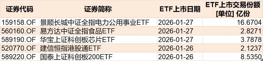 目前有5只ETF披露下周上市,跟踪标的为科创板200、科创板芯片、食品、公用事业等。