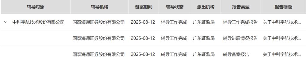 中科宇航成立于2018年12月,是中国科学院力学研究所培育孵化的高新技术企业,主要从事系列化中大型火箭研制、定制化宇航发射、亚轨道科学试验及太空旅游等业务。公司于2025年8月开启上市辅导,由国泰海通担任辅导机构,至辅导验收共耗时五个月。