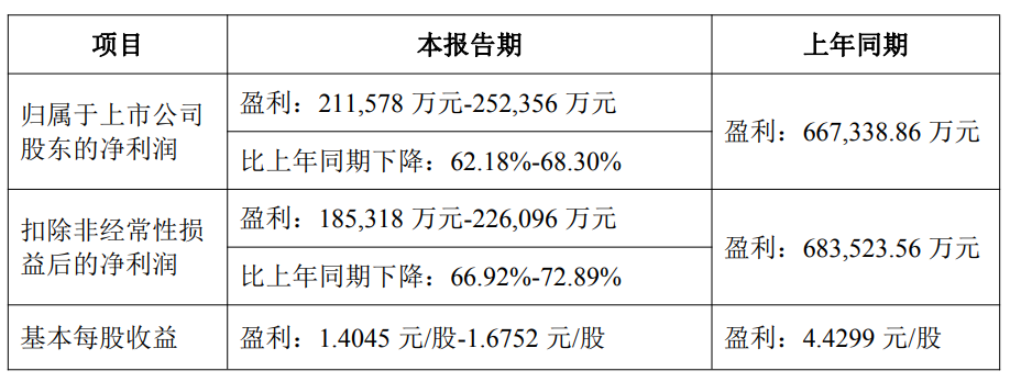 2025年,洋河股份预计净利润将缩水至21.16亿至25.24亿元区间,较2024年同期的66.73亿元缩水超过三分之二。