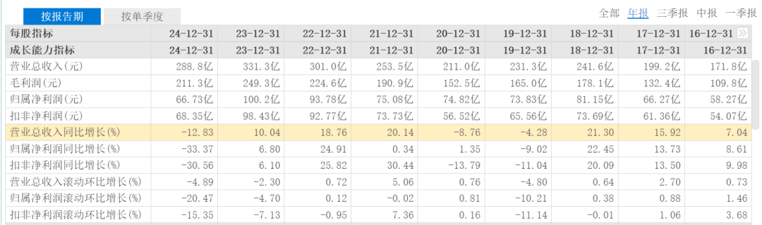 更值得注意的是,回顾2024年,洋河股份净利润已同比下降33.37%,营收下滑15.53%。但2025年仍加速下滑,显示出其经营状况正在恶化而非改善。
