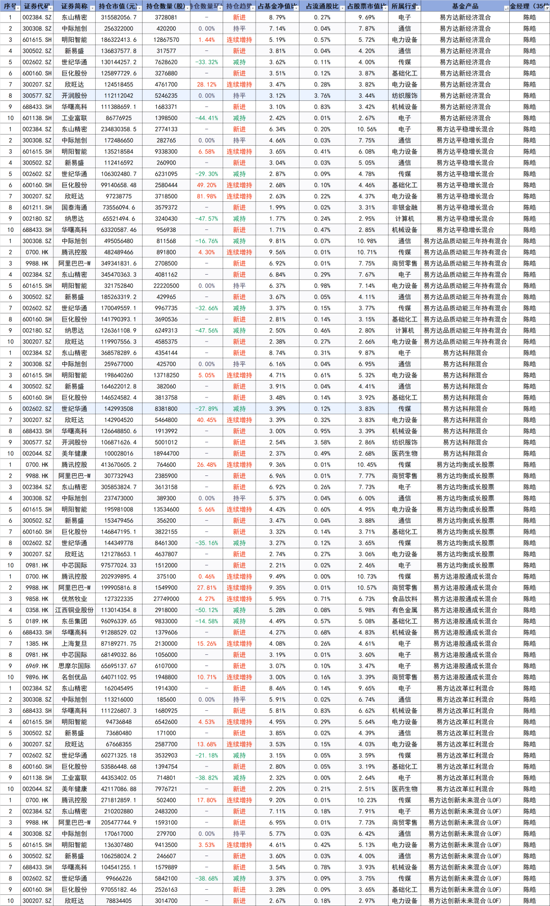 接下来一段时间,我们将陆续解读其中部分基金经理的季报与持仓。本期聚焦的是陈皓。