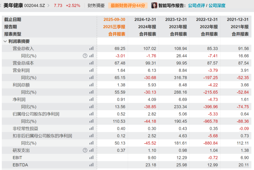 技术层面,2025年以来美年健康股价活跃度明显提升。