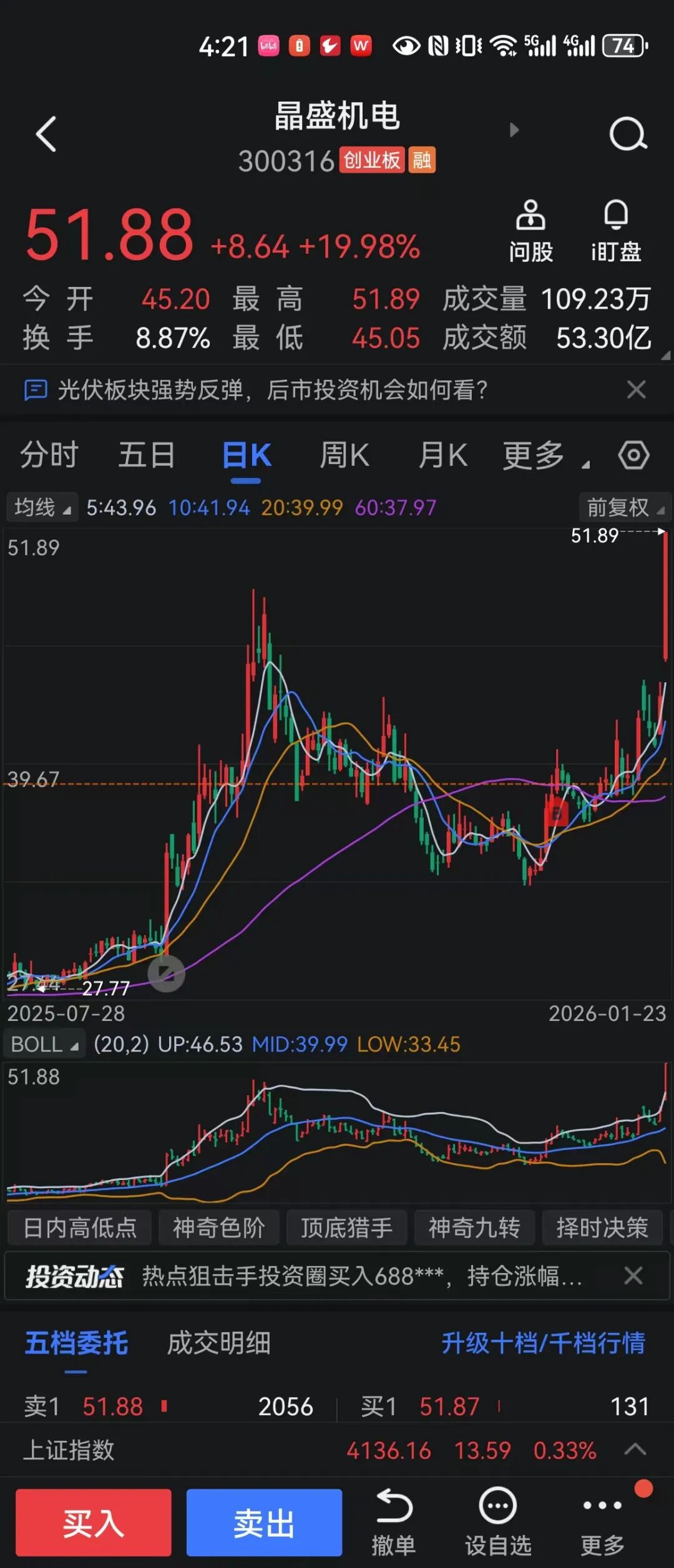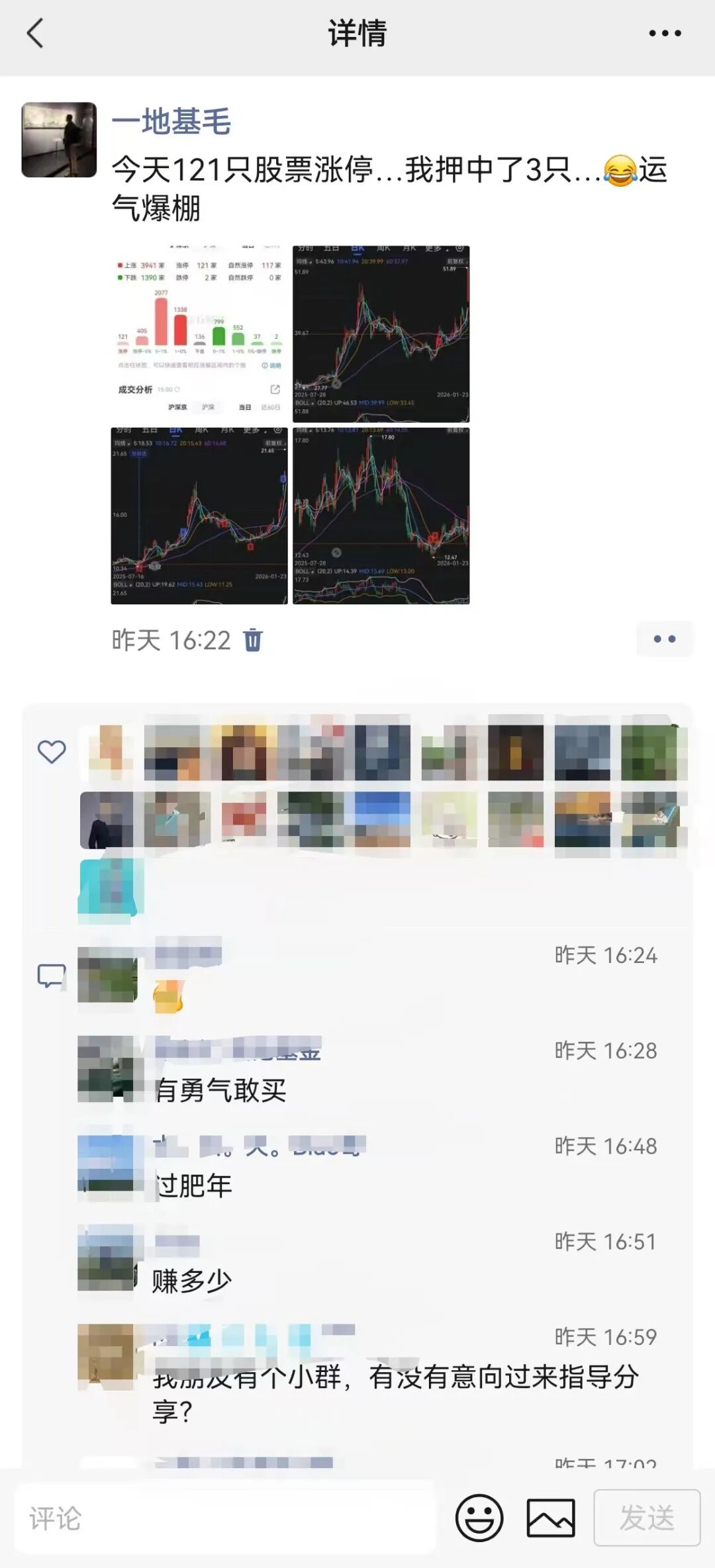 昨天市场121只股票涨停,基毛哥就押中了3只,其中一只还是20CM的涨停PLUS。