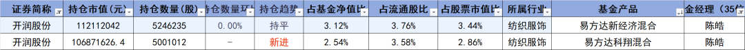陈皓的易方达科翔和易方达新经济持有开润股份,复盘以往数据可以发现,他很早就布局了开润股份,但是一直没有赚到钱。