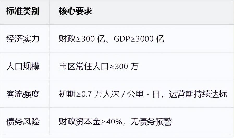 因此,国家对地铁报批、报建的门槛非常高,下图是媒体公开过的标准。