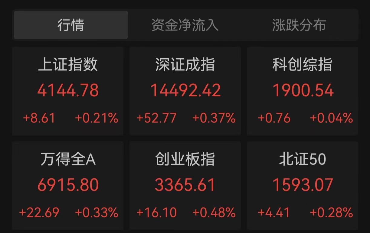 三大股指集体高开,沪指涨0.21%,深成指涨0.37%,创业板指涨0.48%。科创综指涨0.04%。光伏产业链再度走强,太空光伏概念股领涨;黄金、锂矿、人形机器人、AI应用题材活跃。商业航天概念股局部回调。