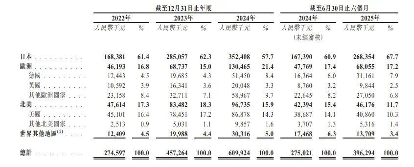 2025年上半年,日本市场带来2.68亿元收入,占总营收的67.7%,接近七成。