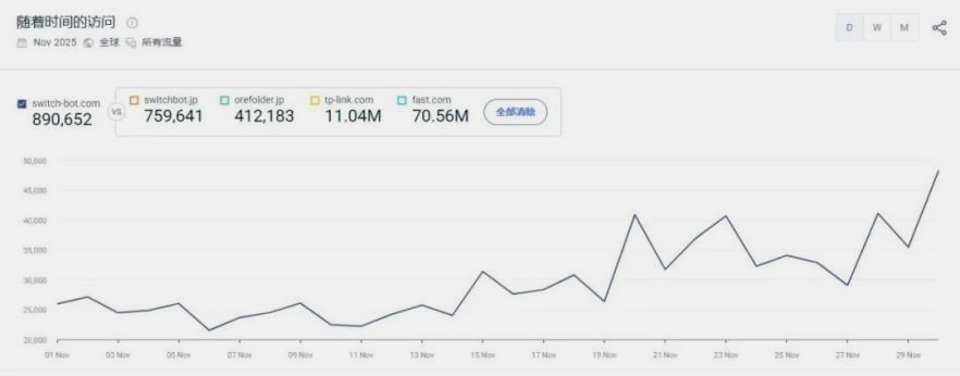 Similarweb数据也能证明渠道实力,SwitchBot官网光11月单月访问量就超89万次,其中日本独立站访问量就有63万,流量主要来自日本、美国、德国这些核心市场,品牌影响力越来越广。