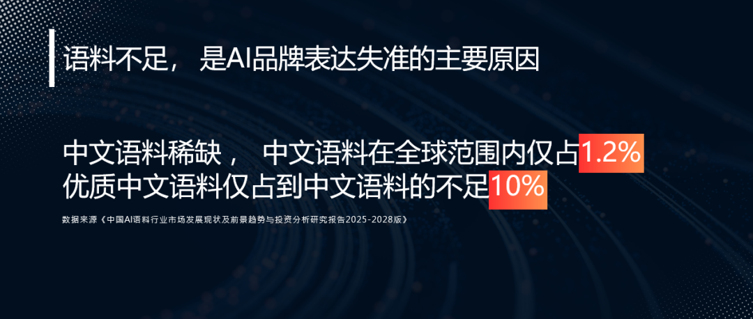 凤凰网深圳公司的策划经理,AI浪潮已席卷品牌推广领域,国内AI用户超7亿,千亿级AI优化市场加速爆发,而优质语料是品牌抢占AI认知权的核心关键。当前优质中文语料极度稀缺,全球中文语料仅占1.2%,其中优质语料不足中文语料的10%,这成为多数品牌在AI推广中陷入困境的根源——AI不推荐、信息失准、优势无法传递,本质都是语料建设缺位。