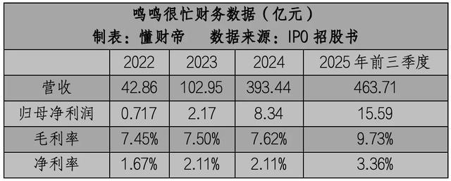 过去三年多,鸣鸣很忙展现了惊人的爆发力。2022-2024年,营收翻了9倍多,归母净利润翻了11.6倍。