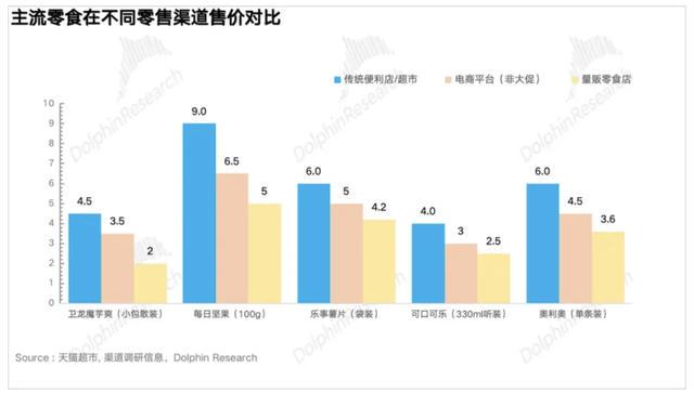 IPO招股书、海豚研究调研数据显示,同类产品、同品质,鸣鸣很忙比超市便宜了7%-40%。如卫龙魔芋爽,传统便利店/超市售价4.5元,电商平台售价3.5元,而零食量贩店只卖2元。[2]