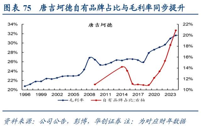 通过做大自营品牌,Costco进一步强化了高性价比定位,美国及加拿大会员续签率高达92.9%,全球会员续签率高达90.5%。唐吉诃德毛利率与自有品牌占比同步提升。