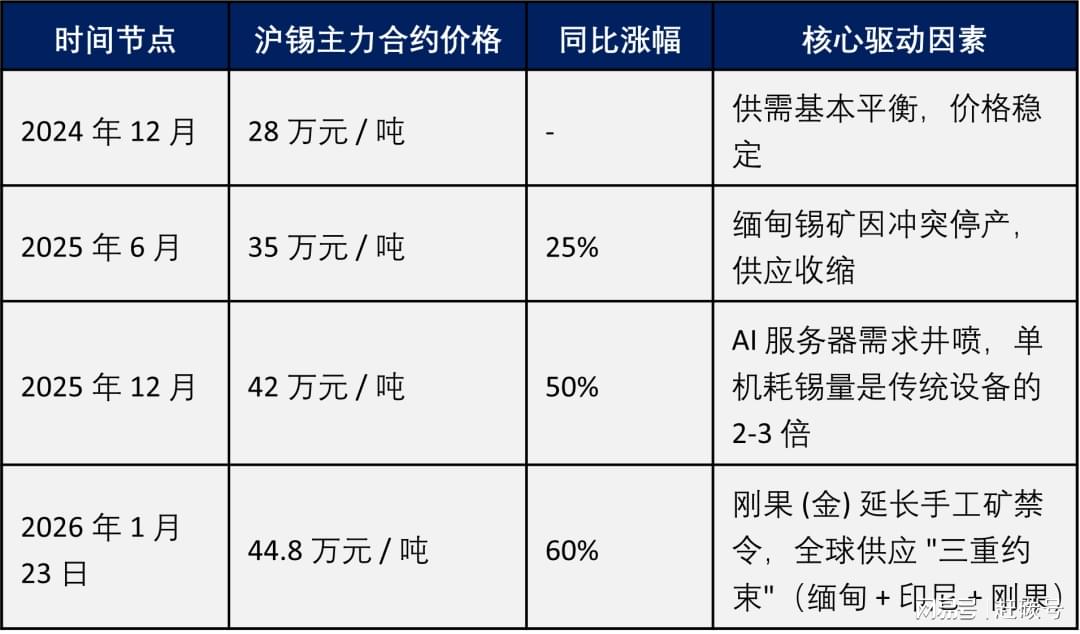 锡价的上涨完全由上游矿产供应、新兴科技需求和金融投机三大因素主导,电子焊料这个小行业在价格形成过程中没有任何话语权,只能被动接受价格波动。这一点和白银暴涨压垮光伏的故事完全一样。