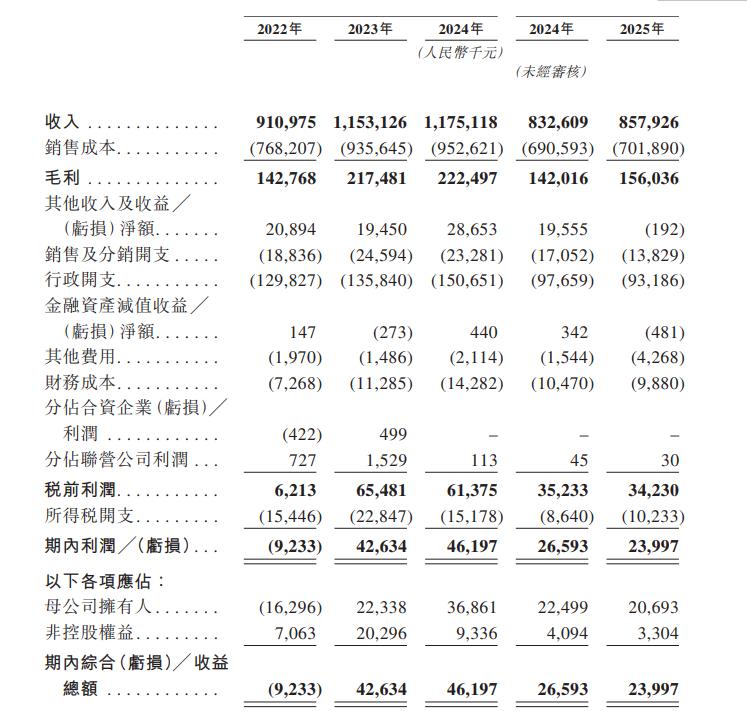 财务方面,2022年至2024年,公司收入分别为9.11亿元、11.53亿元、11.75亿元,同期净利润分别为-923.3万元、4263.4万元、4619.7万元。2025年前三季度收入为8.58亿元,净利润同比下降9.76%,至2399.7万元,母公司拥有人应占权益2069.3万元,同比下滑8%。对于2025年前三季度经调整净利润有所下降的原因,同仁堂医养称,主要是2024年前九个月录得出售石家庄同仁堂中医医院所得的收益1710万元,而2025年同期并无此类收益。
