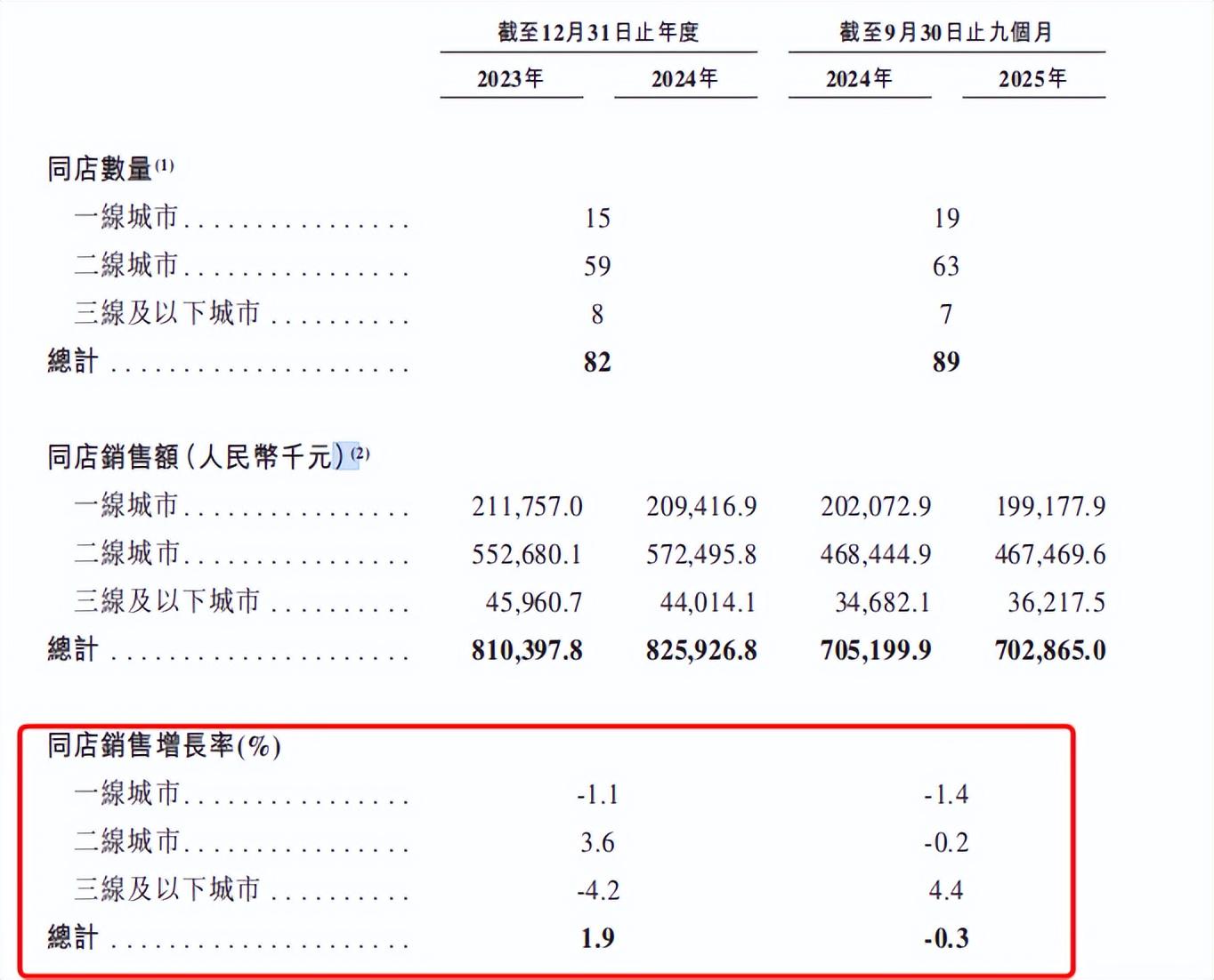 幻师招股书显示,2024年及2025年前三季度,一线城市的同店销售额分别同比下滑1.1%、1.4%;整体同店销售额,也在2025年前三季度同比下滑0.3%,由正增长转为负增长。