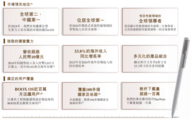经过近20年的发展,文石BOOX已经成为享誉全球的科技品牌,截至2025年9月30日,公司服务100多个国家及地区的客户,坐拥有近百万级月活用户,弗若斯特沙利文数据显示,以2024年零售收入计,公司已是全球第二大、中国第一的知识专注型生产力工具品牌。
